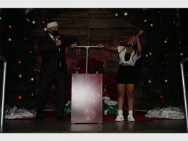 Tiaan Rautenbach and Talia Kodesh of Santa’s Friends perform Santa Baby at the Magical Italian Village of Lights switch on at Montecasino. Photo: Khomotso Makgabutlane