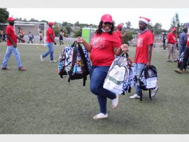 Venolia Manale, Danny Meaker, Tiaan Rautenbach and Talia Kodesh of Santa’s Friends perform a Christmas carol for attendees. Photo: Khomotso Makgabutlane