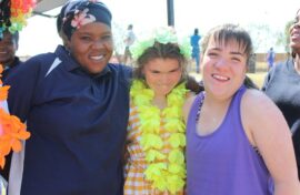 Unity staff member Busisiwe Malate, learners Grace Engels and Mikayla Kaka enjoy the atmosphere at the Casual Day celebrations. Photo: Khomotso Makgabutlane