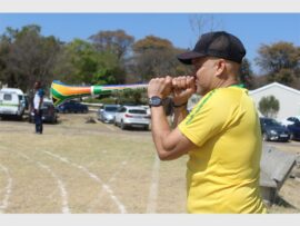 Public relations officer of the Douglasdale CPF Roger Biggar cheers on the football players. Photo: Khomotso Makgabutlane