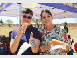 Unity College principal Jeanine Kerr and teacher Vanessa Smith enjoy the food and weather at the Casual Day celebrations with Douglasdale police. Photo: Khomotso Makgabutlane