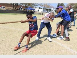 Unity College learners put their strength into the tug-o-war battle. Photo: Khomotso Makgabutlane