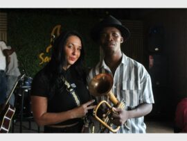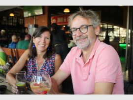 Sharon Prokas and musician Sandile Masilela at Off the Grid in Paulshof. Photo: Khomotso Makgabutlane