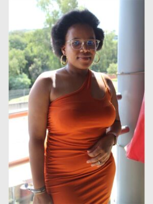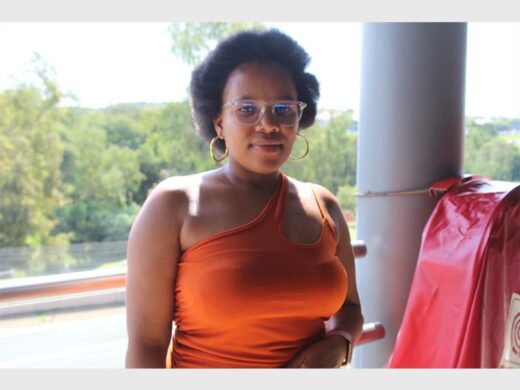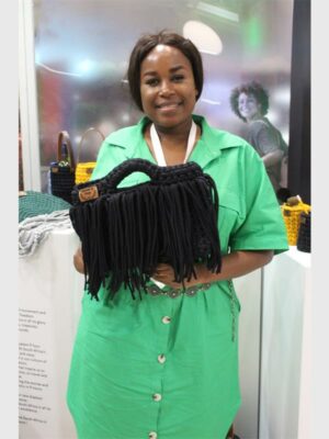 Tebogo Legote, owner of Handmade by Tebogo, holds one of her handmade items on sale. Photo: Khomotso Makgabutlane