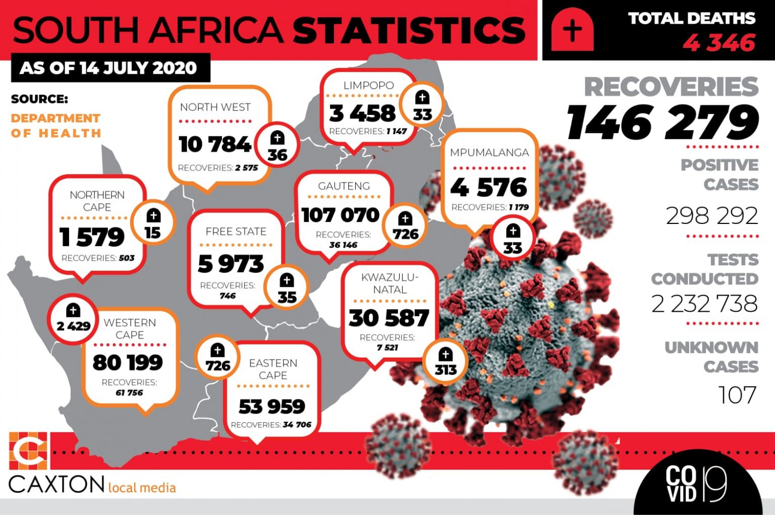 Covid-19 cases in South Africa heading to 300 000 mark