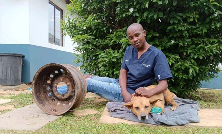 Kloof SPCA rescues dog with head stuck in tyre rim