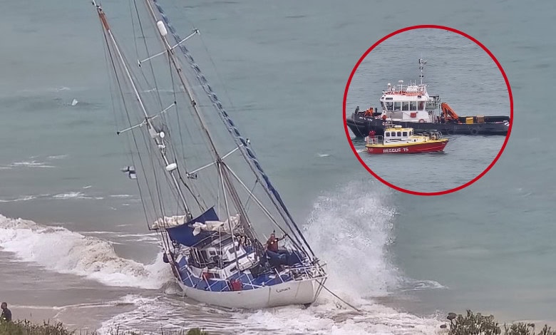 Watch: Yacht stranded on Santos Beach shallows towed out to sea