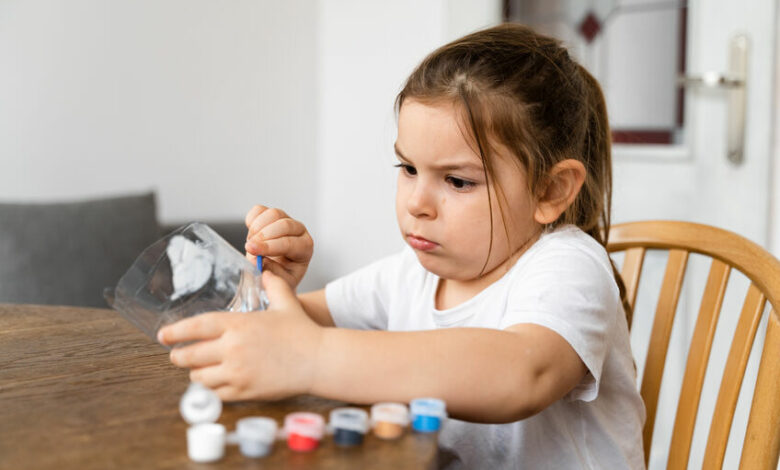 - Help your child add detail by using the smaller paintbrush.