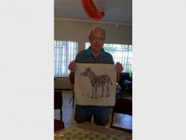 Robert Maltez takes a moment to show off his finished painting during Rest-a-While Service Centre for the Elderly’s recent skills workshop.