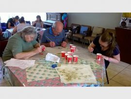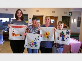 Rest-a-While Service Centre for the Elderly recently hosted a skills workshop where members, together with their friends and family, were able to show off their artistic talents with some fabric painting. Here Lyric Sargent, Sandy Burns, Reve Loader and Jarrett Sargent show off their paintings.