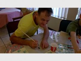 Manus James works on his painting during Rest-a-While Service Centre for the Elderly’s recent skills workshop.