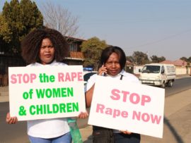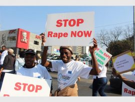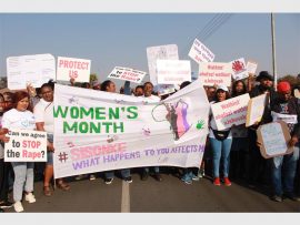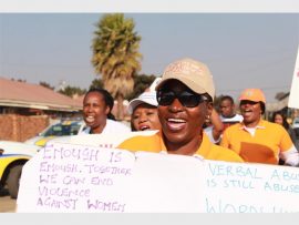Lindokuhle Makhwenkwe and Abel Ngomane raised their placards proudly calling for a stop to violence against women at the #Sisonke march led by Bertha Gxowa Hospital Care Centre in partnership with the Germiston SAPS last Wednesday.