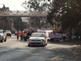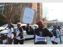 Bertha Gxowa Hospital Care Centre’s #Sisonke campaign members march through the streets of Germiston last Wednesday.