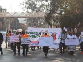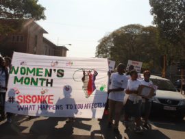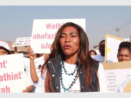 Tshepo Hope Mofokeng from Traditional Health Practitioners (THP) marched in Germiston on Wednesday in support of #Sisonke, a campaign against women abuse.