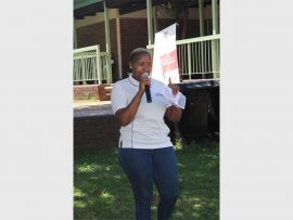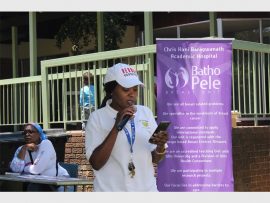 Palesa Kepheane, a donor educator from SANBS, explains how to donate blood to women at the Klopper Park Clinic’s campaign against gender-based violence last Friday.