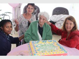 Pick n Pay Primrose surprised Ruby with a colourfully decorated birthday cake for her surprise 100th birthday party at Protea Old Age Home in Primrose last Friday.