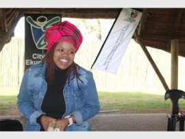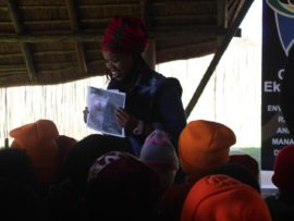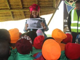 Rosisang Ramonye from the Department of Environmental Resources Management in the metro handed out giveaways to learners who participated in the question and answer sessions about nature conservation last Thursday at the Rondebult Bird Sanctuary.