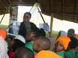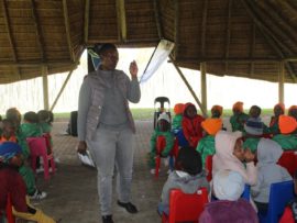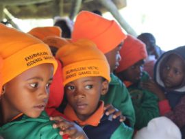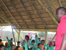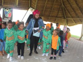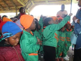 Teaching Grade R learners on how to follow easy, everyday methods to keep their environment clean.