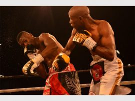 Up-and-coming youngster from the south Ricardo Malajika had an easy day at the office as he dispersed of Arnel Lubisi in the first round of their junior bantamweight contest at Emperors Palace recently. Photo by: Annette van Schalkwyk