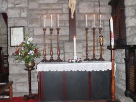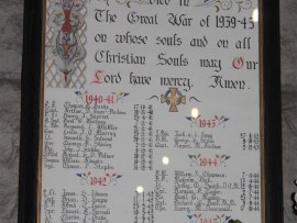 To the left of the altar is a framed Roll of Honour listing the dead of the Second World War.