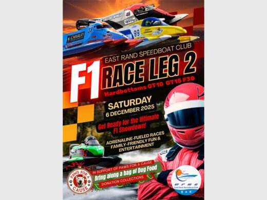 The quiet waters of the CR Swart Dam will erupt with speed and excitement on December 6 when the East Rand Speedboat Club (ERSC) hosts the second round of the South African Formula One (F1) Powerboat Championship.