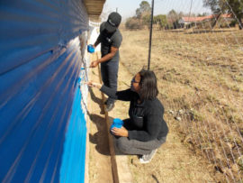 Personel of Heidelberg Mall paid a visit to the SPCA to do some painting of the animal’s shelter. Patricia Sefuthi, Charlie Moloi and Sibisiso Ngwenya did not mind doing their in the 67 minutes for Mandela Day.