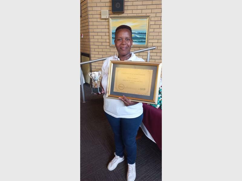 Olivia Namane received the Nurse of the Year award at the Nigel Old Age Home.