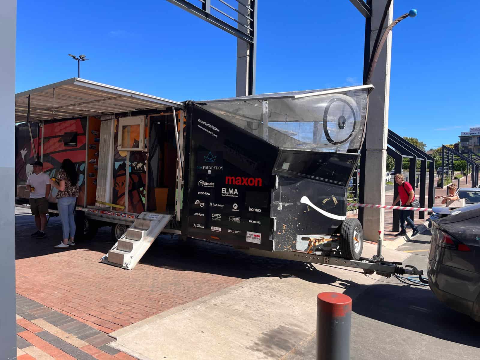 The world’s largest solar-powered vehicle, the SolarButterfly, made a stop at Merino Mall, showcasing its eco-friendly design and recycled ocean plastic construction.