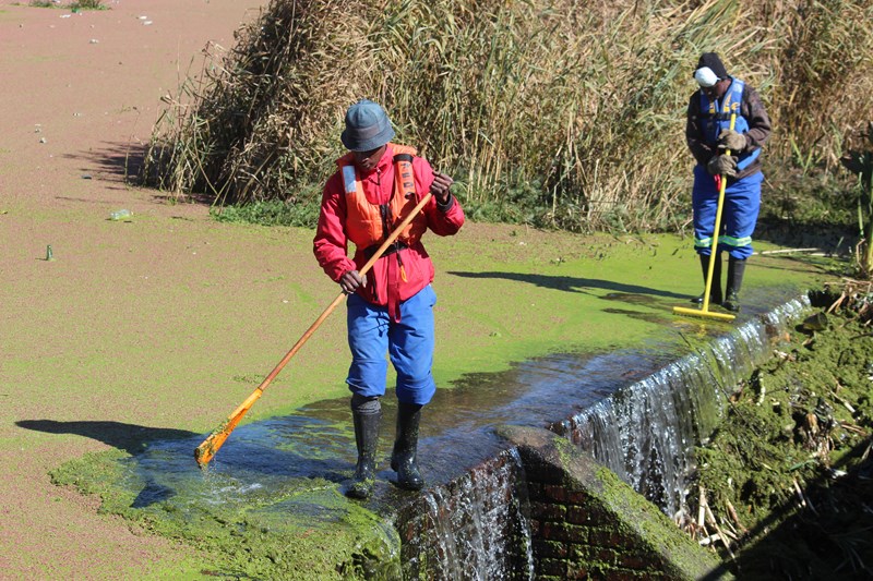 Employees of Msukaligwa Municipality cleans the Petdam