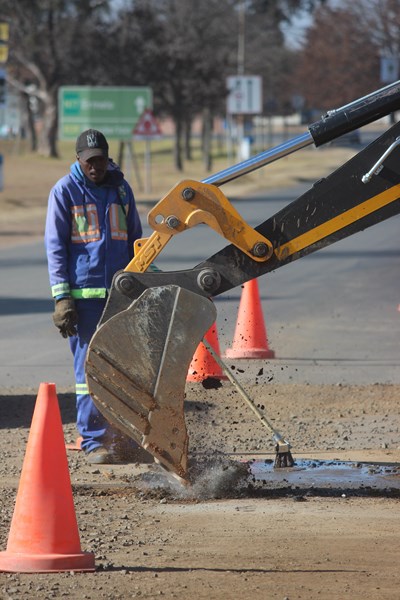 GalleriesMunicipal workers are digging up the deteriorated road at the Joubert and Oosthuise Street intersection.