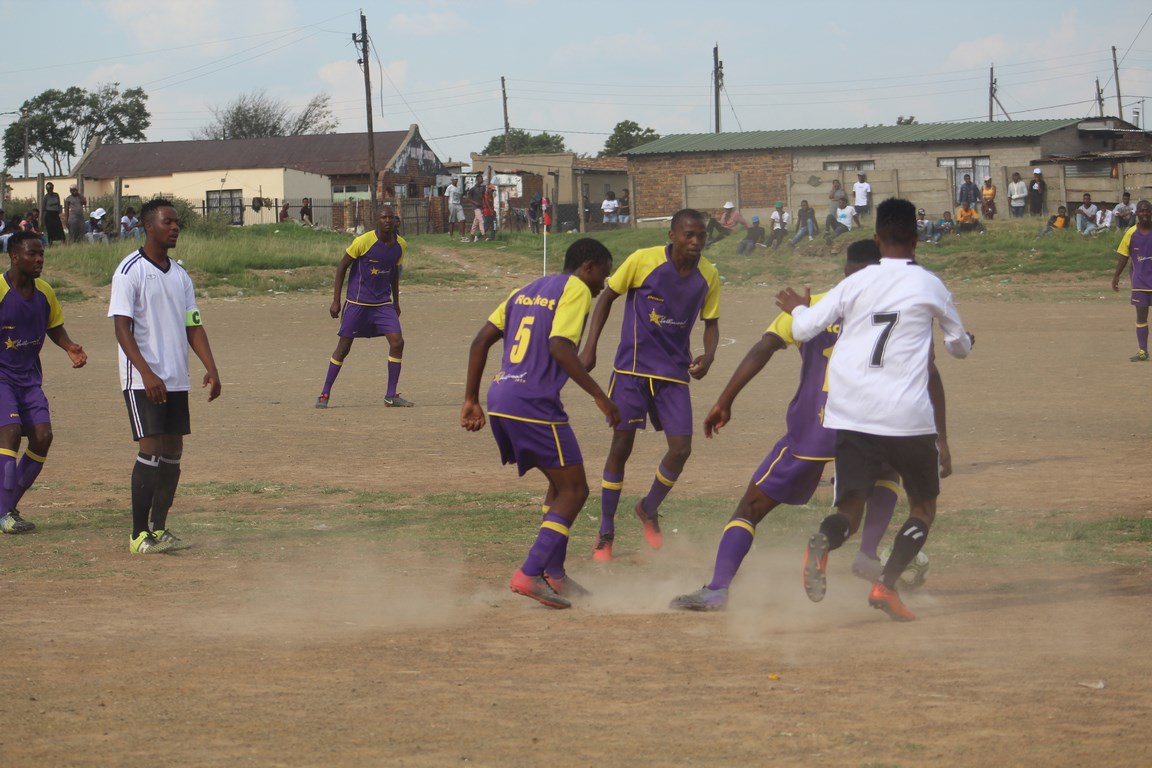 SAB Soccer League Gert Sibande Stream B action: Mafia FC vs Mpumalanga Eagles at KwaDela Stadium in Davel