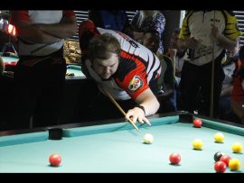 Hein Heine van Ermelo het in die doodsnikke van die agtste wedstryd, nadat Jacobus le Roux ’n fout begaan het en een van sy kleurballe gemis het, sy kleurballe noukeurig gepot en die witbal inlyn gelaat om die swartbal in die middelsak te pot.