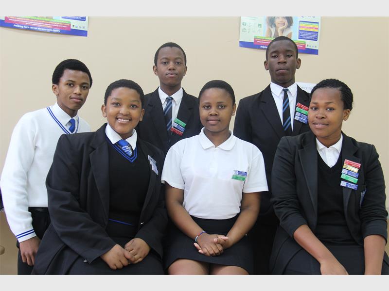 Pictured from left, standing: Sphumeza Mkhaliphi, Wandile Mpanza and headboy, Mbuso Dlomo.