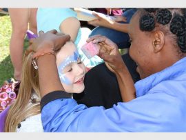 Just a little bit of glitter to finish off the look: Paytn Manns (5) enjoying being transformed into a character from Disney’s Frozen, by face painter Ntokozo Zwane. PHOTOS: Evelyn Morris