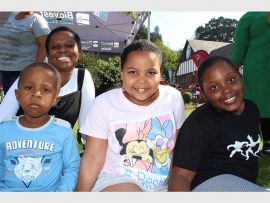 Inathi Zondo (3), Thembi Ncwane, Joshelle Langford (7), and Lubanzi Dlamini (9) enjoy a pic-nic on the grass near the tea garden at the Thomas More country fair on Saturday, 27 July. PHOTOS: Evelyn Morris