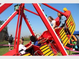Kirsten Moffat (12) and Mivuyo Nomthganly (11) enjoying themselves on one of the many rides at Thomas More Country Fair over the weekend. PHOTO: Evelyn Morris