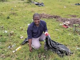 Zamokuhle Mnomiya was among a group of 70 people who picked up 395 bags of trash.