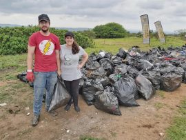 Husband and wife duo, Markus and Mélanie Harmse with some of the rubbish bags collected on the day.
