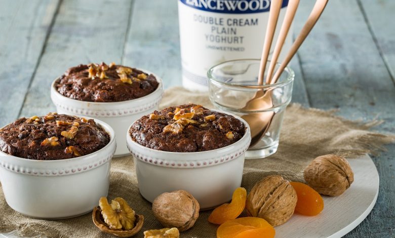 You’ll need: For the pudding: 250ml flour; 180ml castor sugar; 45ml cocoa powder; 10ml baking powder; 1ml salt; 125ml chocolate chips*; 60ml dried cranberries; 125ml walnuts, chopped*; 180ml Lancewood Double Cream Plain Yoghurt; 30ml melted butter; 2.5ml vanilla essence; 1 extra large egg.