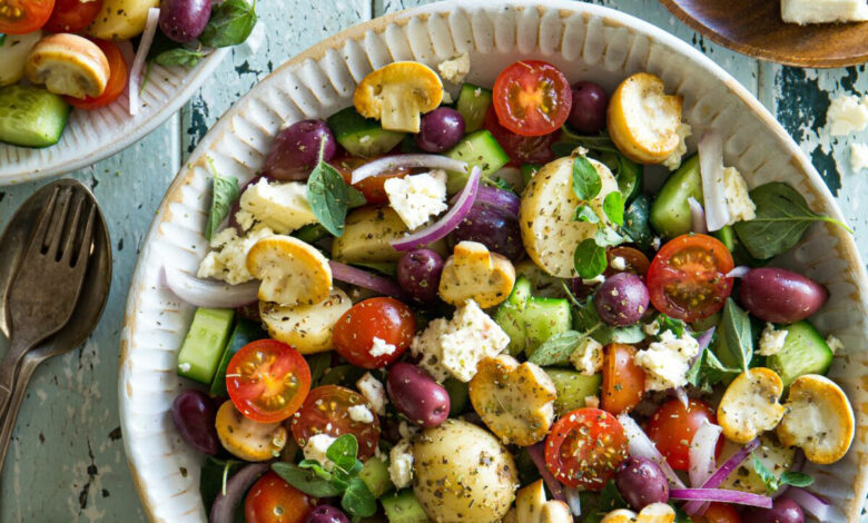 Discover the delightful flavours of Greece with this nourishing and mouth-watering mushroom and potato salad! Brimming with a medley of fresh veggies and delectable mushrooms, this salad is elevated by a zesty.