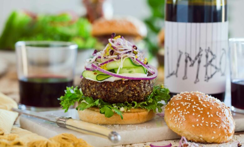 Mushroom and Quinoa Burger Paired with Limbo Red