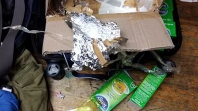 Crime"Upon arrival police discovered five rhino horns wrapped in a foil, concealed in sweets and green tea boxes."