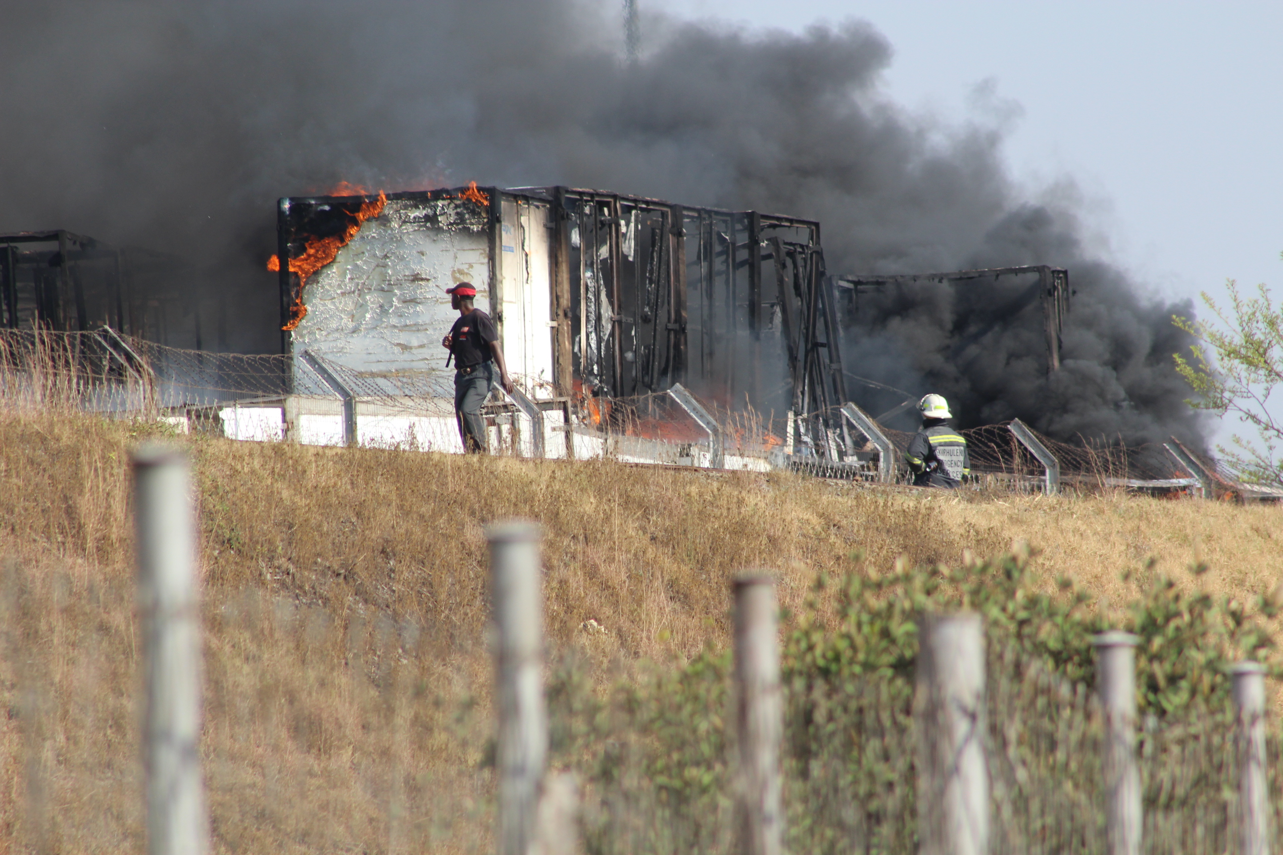 Contrary to initial reports which stated the fire was at Barloworld, the containers that caught fire belong to PX Spoornet and were either situated next to or on Transnet Freight Rail premises. These premises are next to the railway line and are right next to Barloworld Logistics, with only a fence separating the two properties.