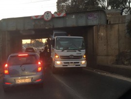 • Driver runs away as truck gets stuck under Elgin Road bridge