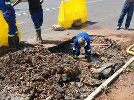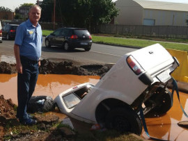 “When I arrived there the car was still stuck but there was no driver in sight. I suspect because the pipe was still leaking when the workers knocked off yesterday, the water filled up inside the hole.”