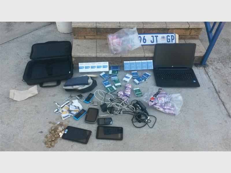 Molokomme said: “Upon searching the car and suspects, the police recovered, among other things, cellphones, coins, cigarettes, a laptop and air time coupons.”