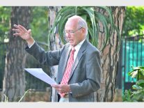 KEITH Martin, head of Modderfontein Heritage Society, giving a speech at the unveiling of the plaque at 8 Brussels Avenue.