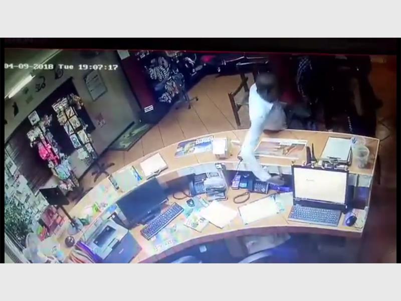 When employee Riaan van den Heever left the front desk to assist a client, the suspects moved in. One man leaned against the desk casually, while the other man and woman continued to distract the employees.