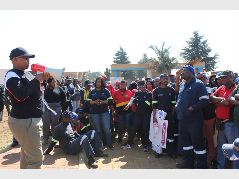 “We are here for one issue and that is salaries. The issue that has brought us here is the reluctance of the employer to convene and consult with the labour force,” said Mpho Meso of the South African Municipal Workers Union (Samwu).