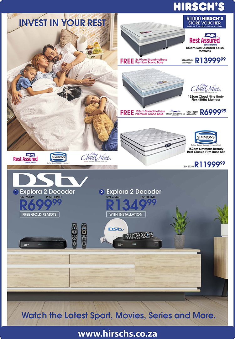 In celebration of Hirsch’s 42nd Anniversary, in addition to offering amazing specials on a wide range of Electrical and Household appliances Hirsch’s are giving away a special limited edition DSTV Explora 2 Decoder.